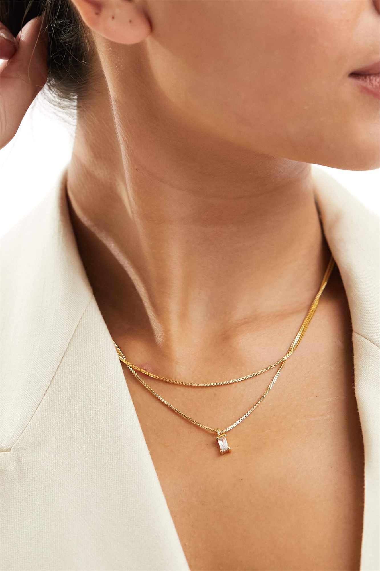 Многорядный кулон с подвеской из кубического циркония, покрытый 14-каратным золотом, в подарочном пакете