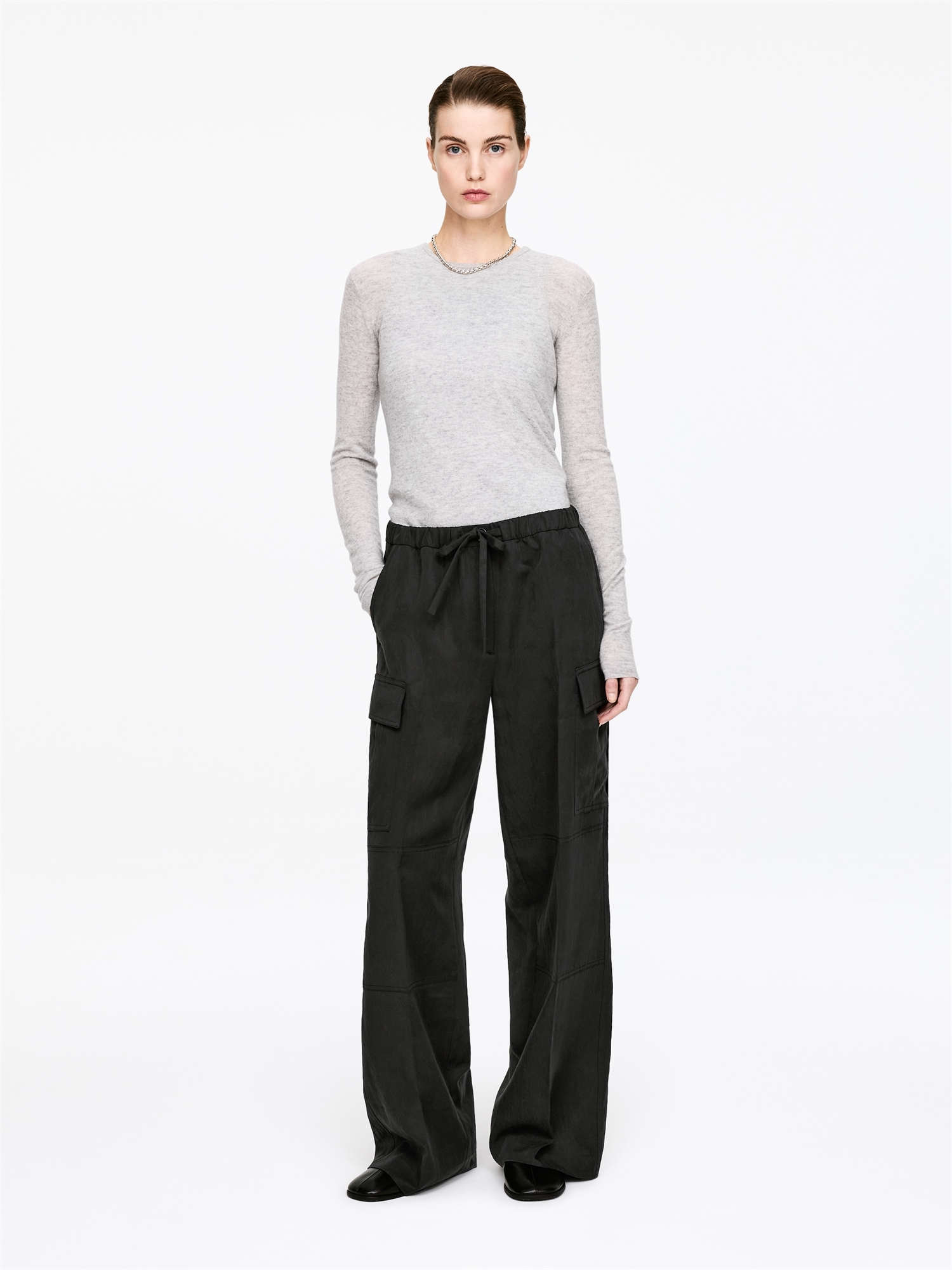 Брюки из легкой ткани с завязками и эластичным поясом. Детали: косые боковые карманы, задние карманы с клапанами и накладные карманы на штанинах с клапанами, усиленные колени. Носите в повседневном стиле или дополните каблуками.
