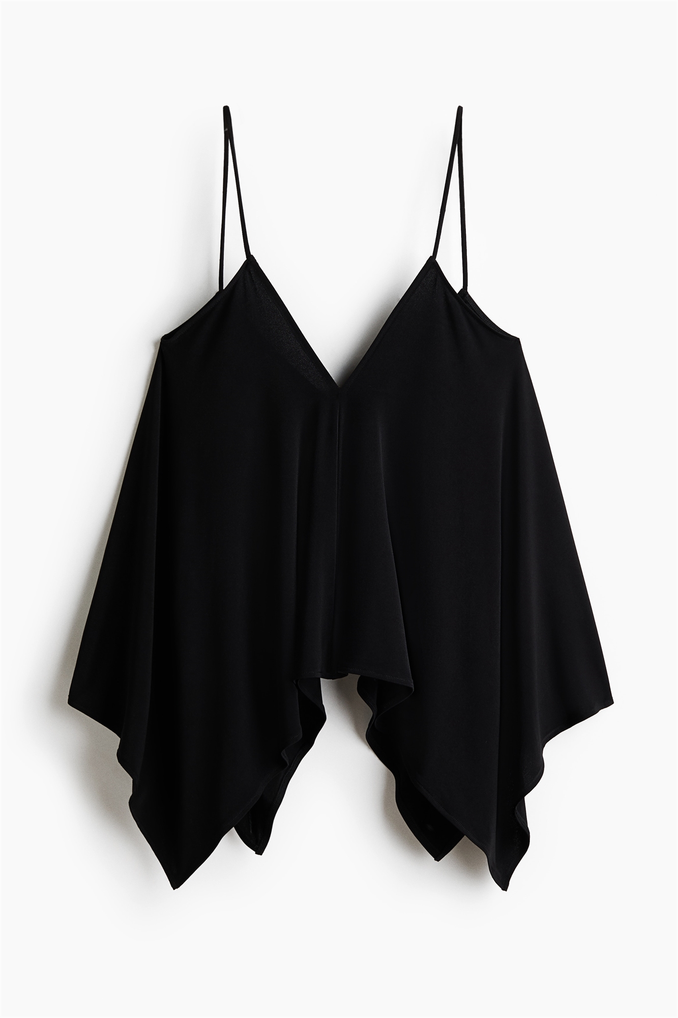 Топ свободного кроя из мягкого джерси с V-образным вырезом спереди и сзади, тоненькими бретелями и асимметричным низом.
