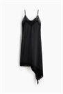 Платье длиной до колен из трикотажа интерлок с кружевной отделкой по верху и подолу. V-образный вырез, бретели-спагетти и асимметричный подол.