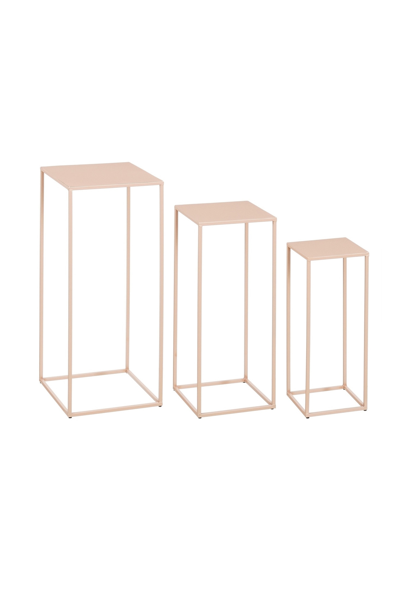 Свежие, функциональные и стильные: приставные столики Quinty от Mica Decorations дополнят любую комнату. Этот набор из трех квадратных приставных столиков светло-зеленого цвета отличается чистым современным дизайном. Они изготовлены из прочного железа и легко вписываются в различные стили интерьера, от минимализма до игривости. Идеально подходят для установки рядом с диваном, в качестве столика для растений или для демонстрации декоративных предметов. В комплект входят три столика разной высоты: L20 x W20 x H50 см, L25 x W25 x H60 см и L30 x W30 x H70 см. Также доступен в светло-розовом варианте, идеально подходящем для комбинирования и чередования.