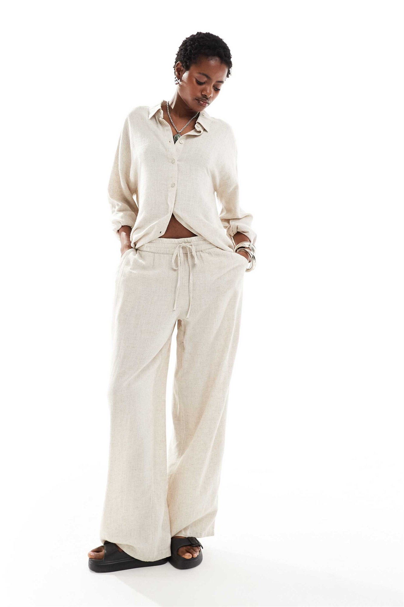 Брюки свободного кроя из смешанного льна co-ord