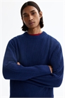 Джемпер из мягкого текстурированного трикотажа с ребристой отделкой на вырезе, манжетах и подоле. Классический силуэт и прямой крой для комфортной носки.