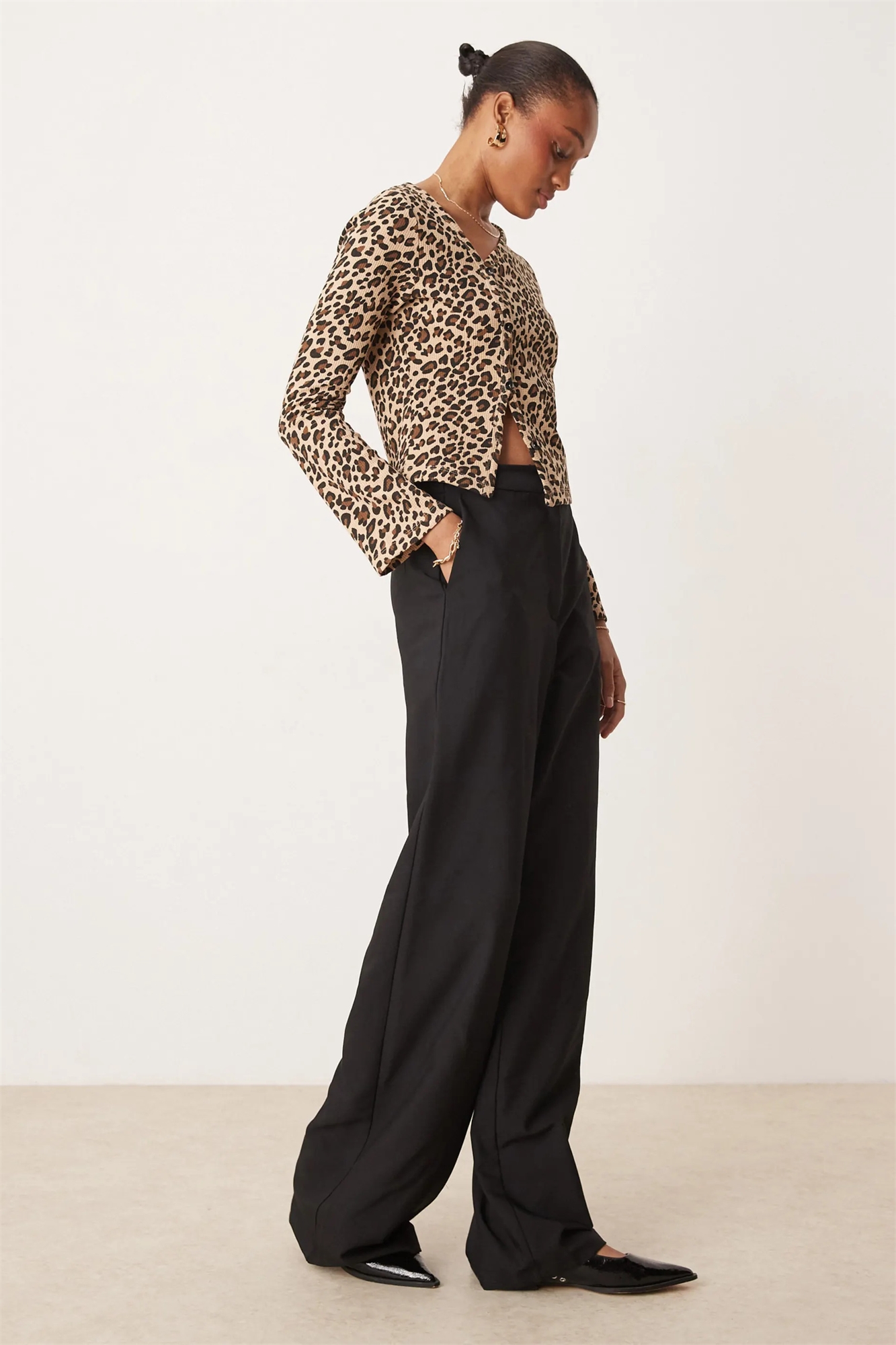 Высокие брюки с прямыми брючинами свободного кроя
