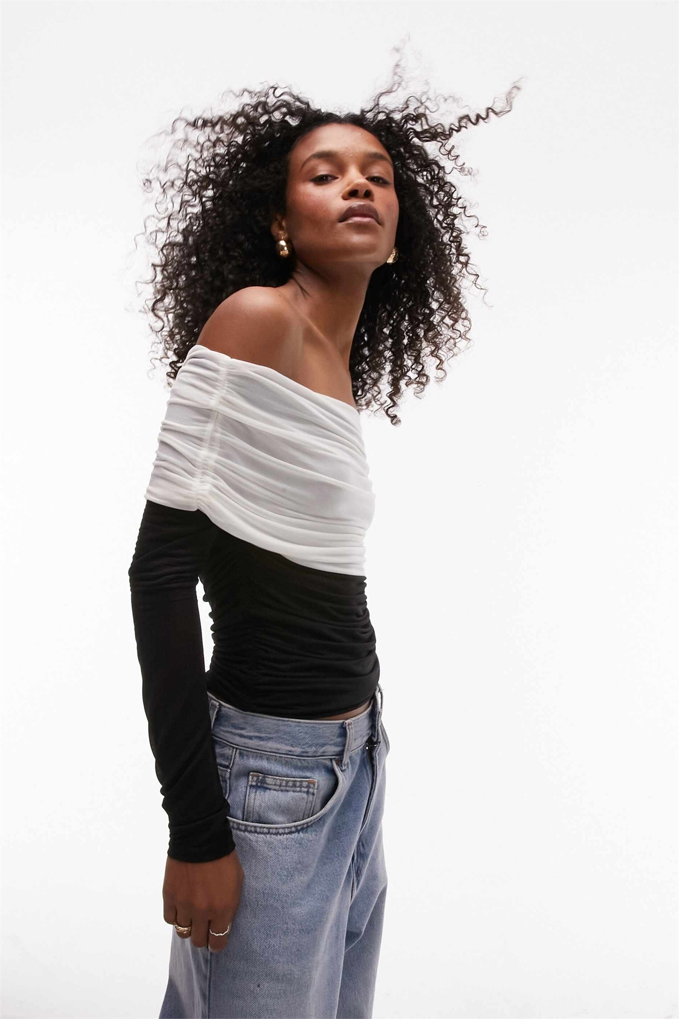 Прозрачная блузка с длинными рукавами и вырезом «бардо» в стиле «колор-блок»
