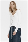 Топ с длинными рукавами из мягкого хлопка с ребристой вязкой и рядами пуантелье. Вырез-лодочка с отделкой гребешком и застежка на пуговицах.