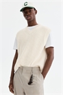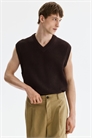 Свитер-жилет из мягкого трикотажа с ребристым V-образным вырезом и ребристой отделкой вокруг пройм и по низу. Классический силуэт и прямой крой для комфортной носки.