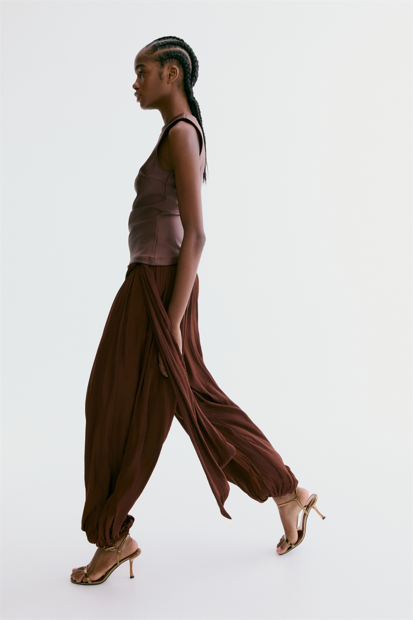 Брюки-баллоны с драпированными вставками