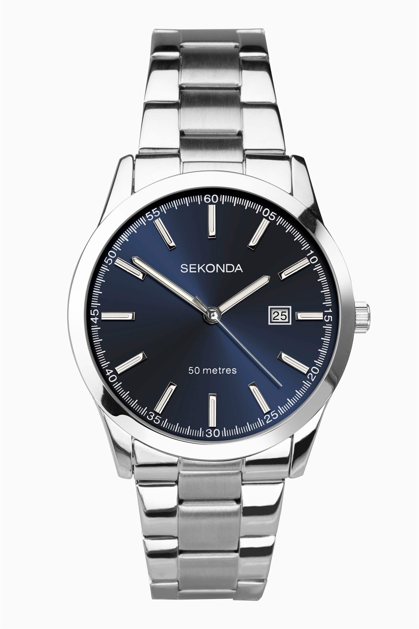 Мужские аналоговые часы Taylor диаметром 41 мм с круглым корпусом из серебряного сплава, браслетом из нержавеющей стали серебристого цвета и синим циферблатом