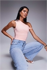Эксклюзивный двухслойный топ с открытыми плечами и облегающим силуэтом