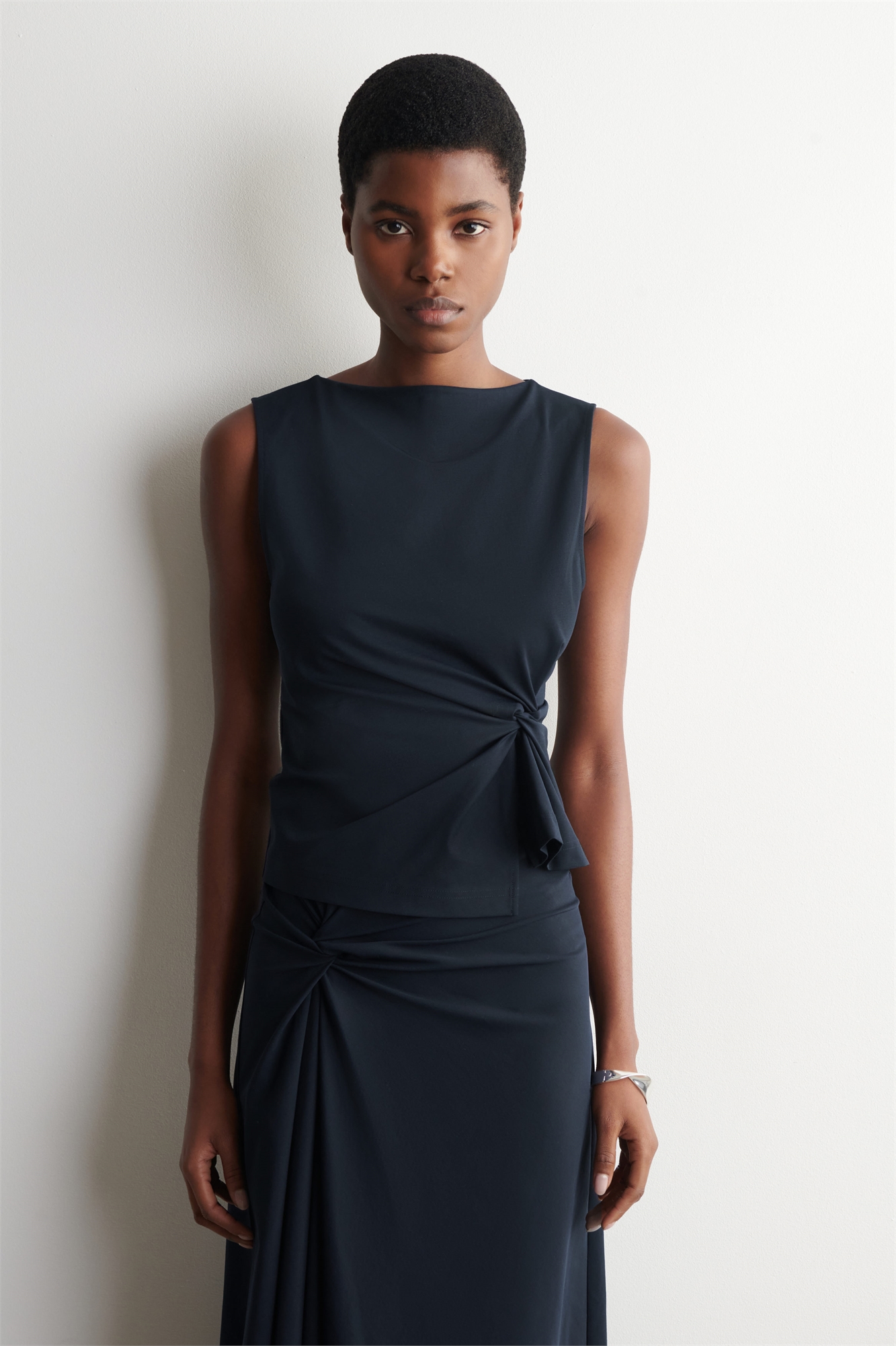 Этот современный топ закручен в талии, создавая скульптурный силуэт. Он изготовлен из ультрамягкого хлопкового джерси, имеет узкий крой и выполнен в насыщенном бордовом оттенке. Сочетайте его с юбкой того же цвета. Узкий крой. Машинная стирка. Длина спинки размера S составляет 47 см. На модели размер S.