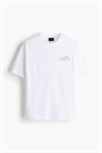 Футболка из хлопкового джерси с принтом, круглым вырезом с ребристой отделкой, спущенными плечами и прямым покроем. Свободный крой для непринужденного, но не чрезмерного силуэта.