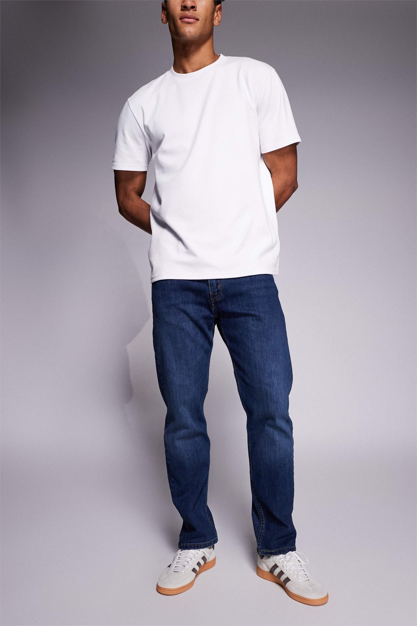 Неэластичный деним: средне-синяя оттенок Основной материал: 82% хлопок, 17% полиэстер, 1% эластан.