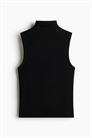 Короткий топ без рукавов из мягкого тонкого трикотажа с высоким воротником и прямым подолом.