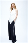 Длинный топ без рукавов из тканого материала с узким кроем в верхней части, воротником-стойкой с широкими завязками на шее и вырезом в форме ключа на спине. V-образный подол спереди и сзади.