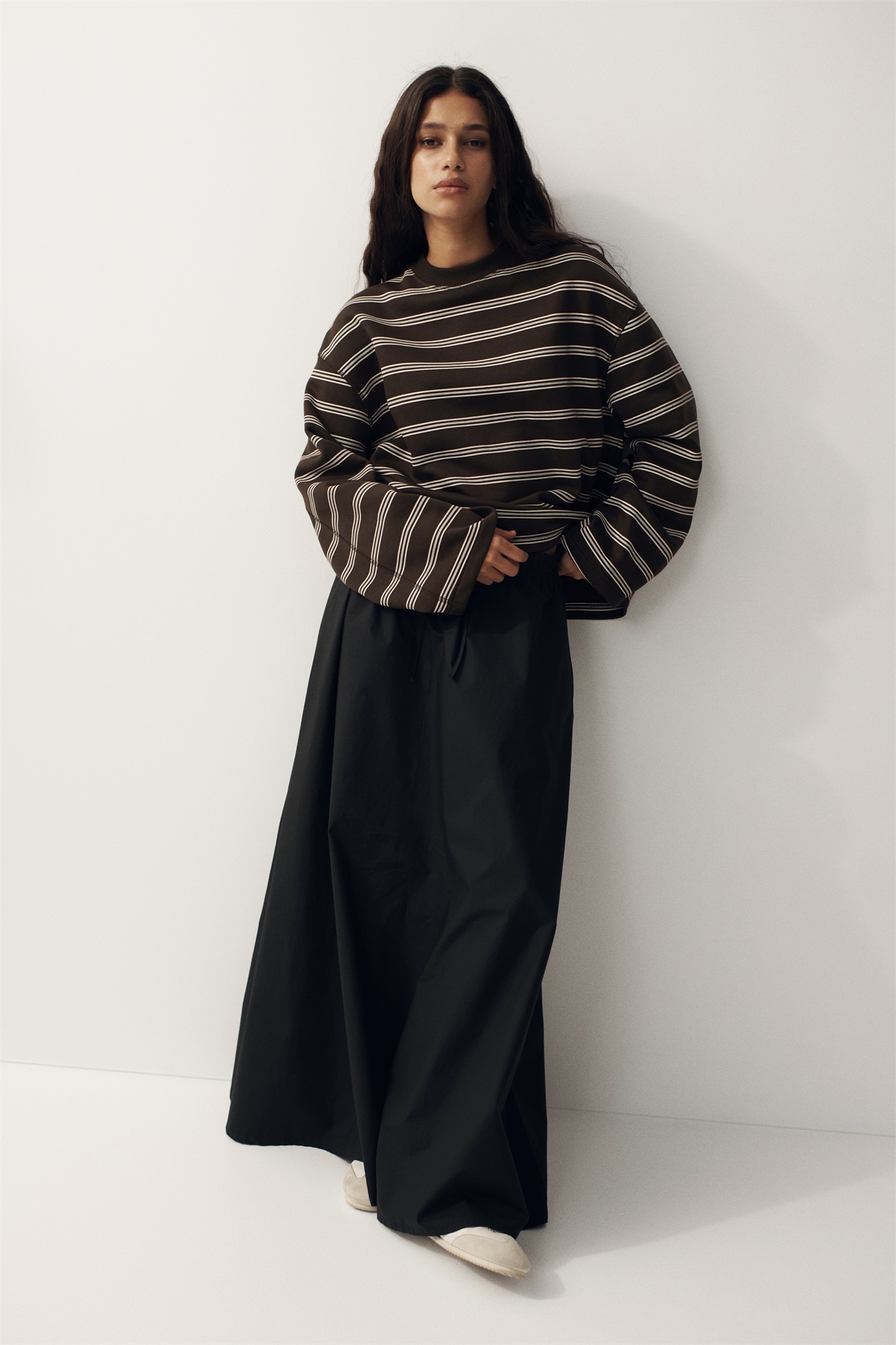 Оверсайз-топ с длинными рукавами из ткани для свитшотов с мягкой ворсистой внутренней стороной. Круглый вырез с ребристой отделкой, заниженные плечи и кокетка сзади, продолжающаяся по рукавам.