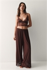 Пижамные штаны из мягкого ребристого джерси с высокой талией на скрытой резинке и прямыми брючинами с широкой кружевной отделкой по низу.
