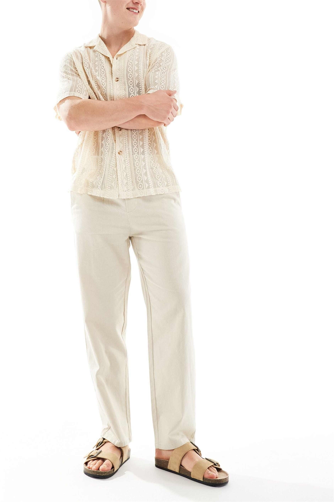 Брюки свободного кроя из смешанного льна