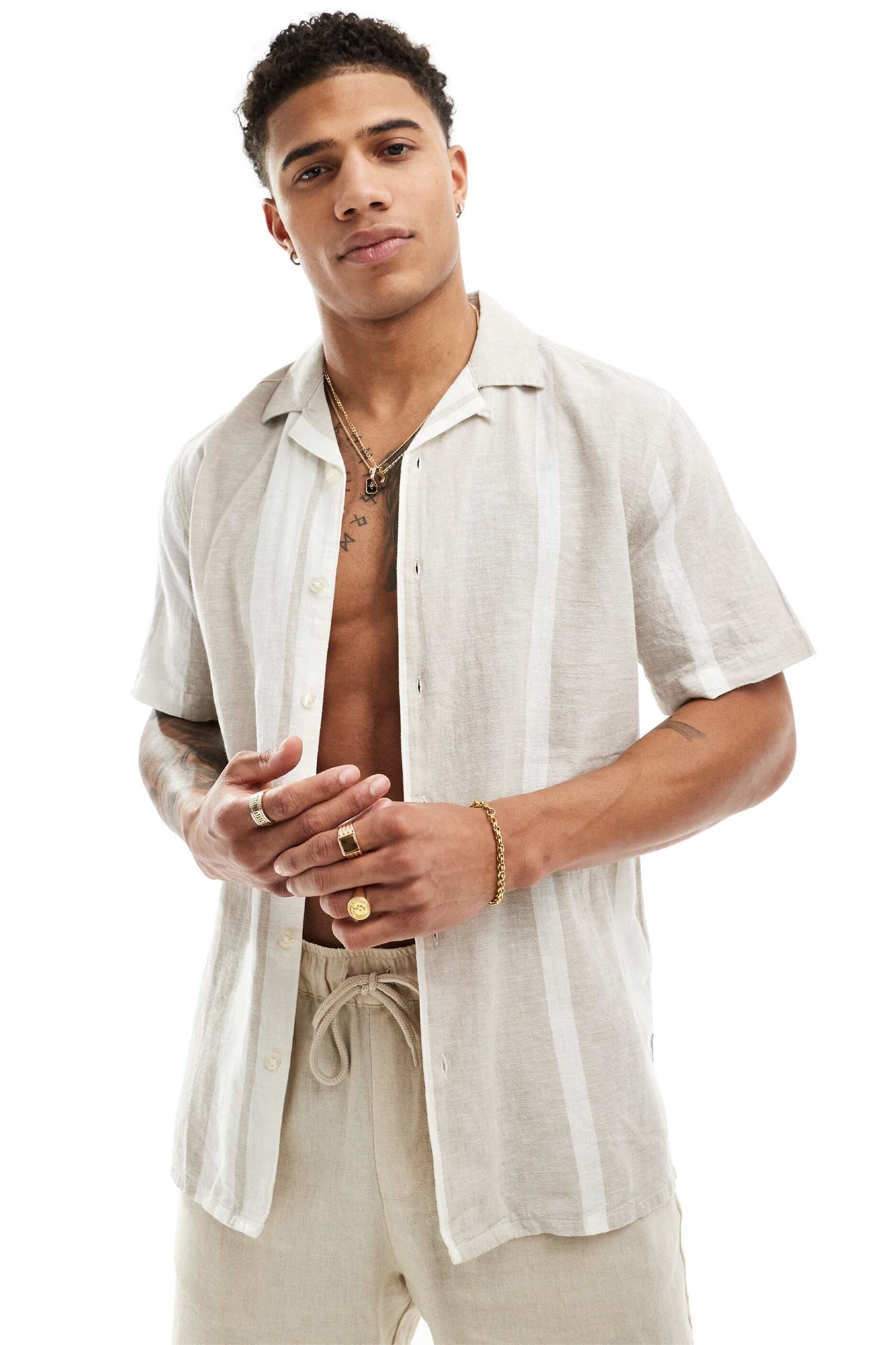 Рубашка с воротником-ревер из смешанного льна