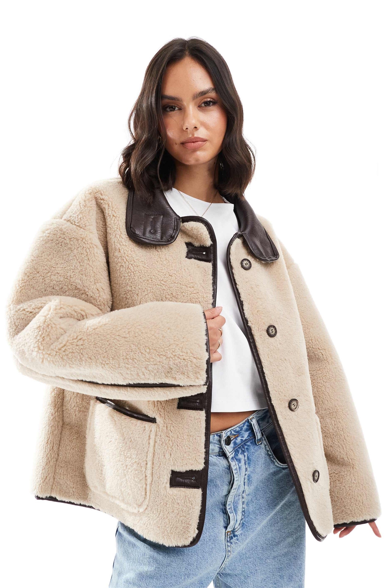 Куртка из искусственного меха с контрастными вставками