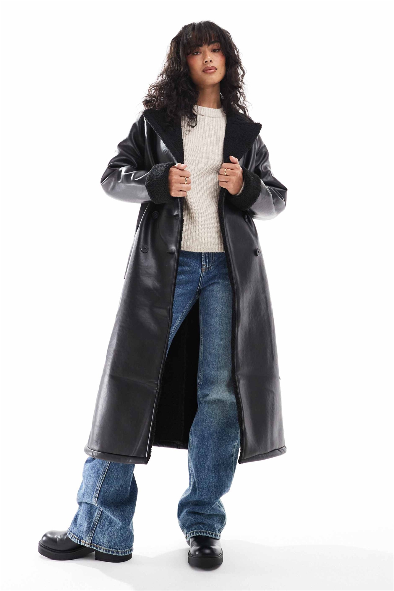 Длинное пальто в стиле «авиатор» с отделкой из борж