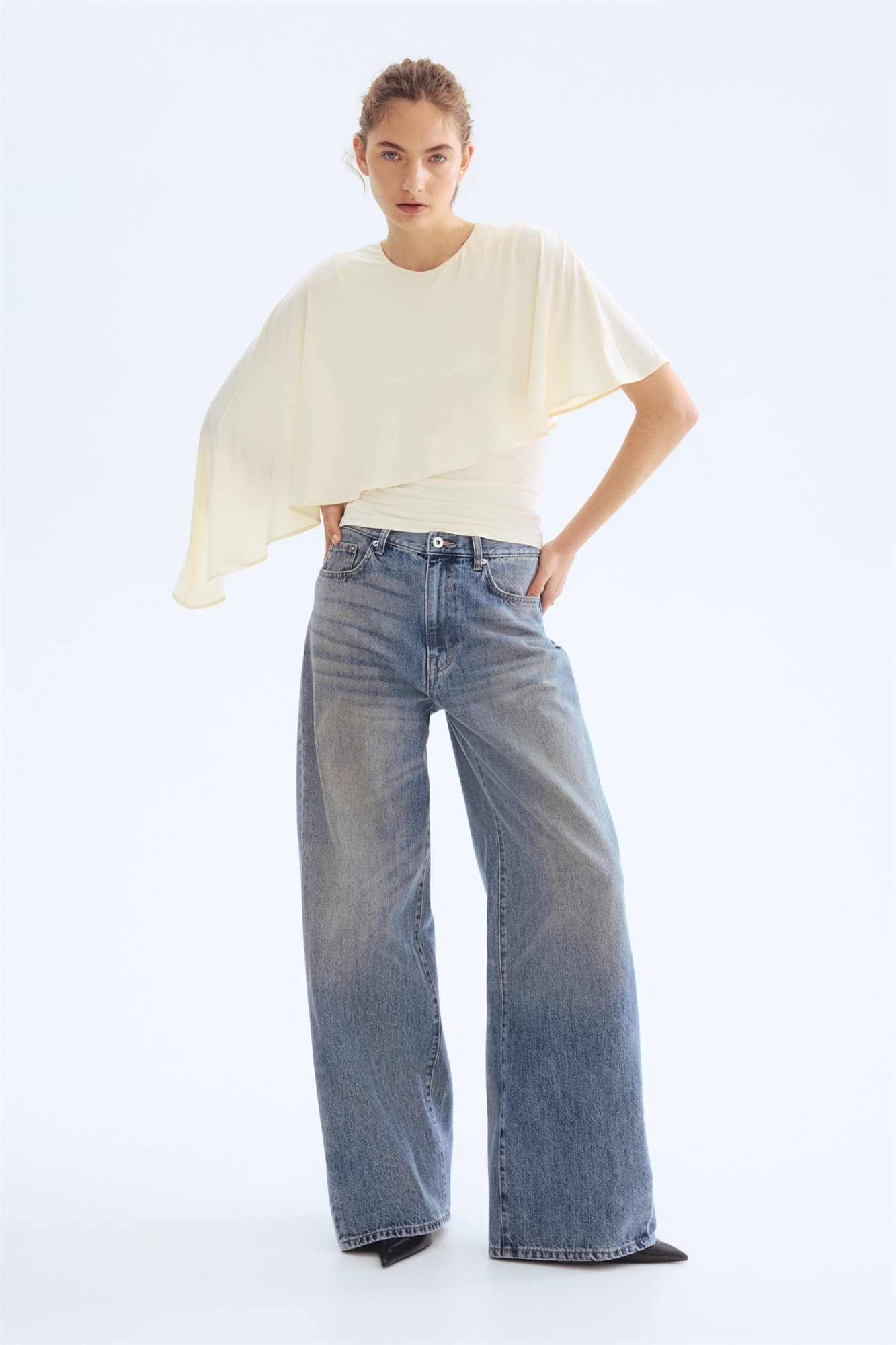 Топ из мягкого джерси с круглым вырезом и асимметричным накидным слоем сверху.