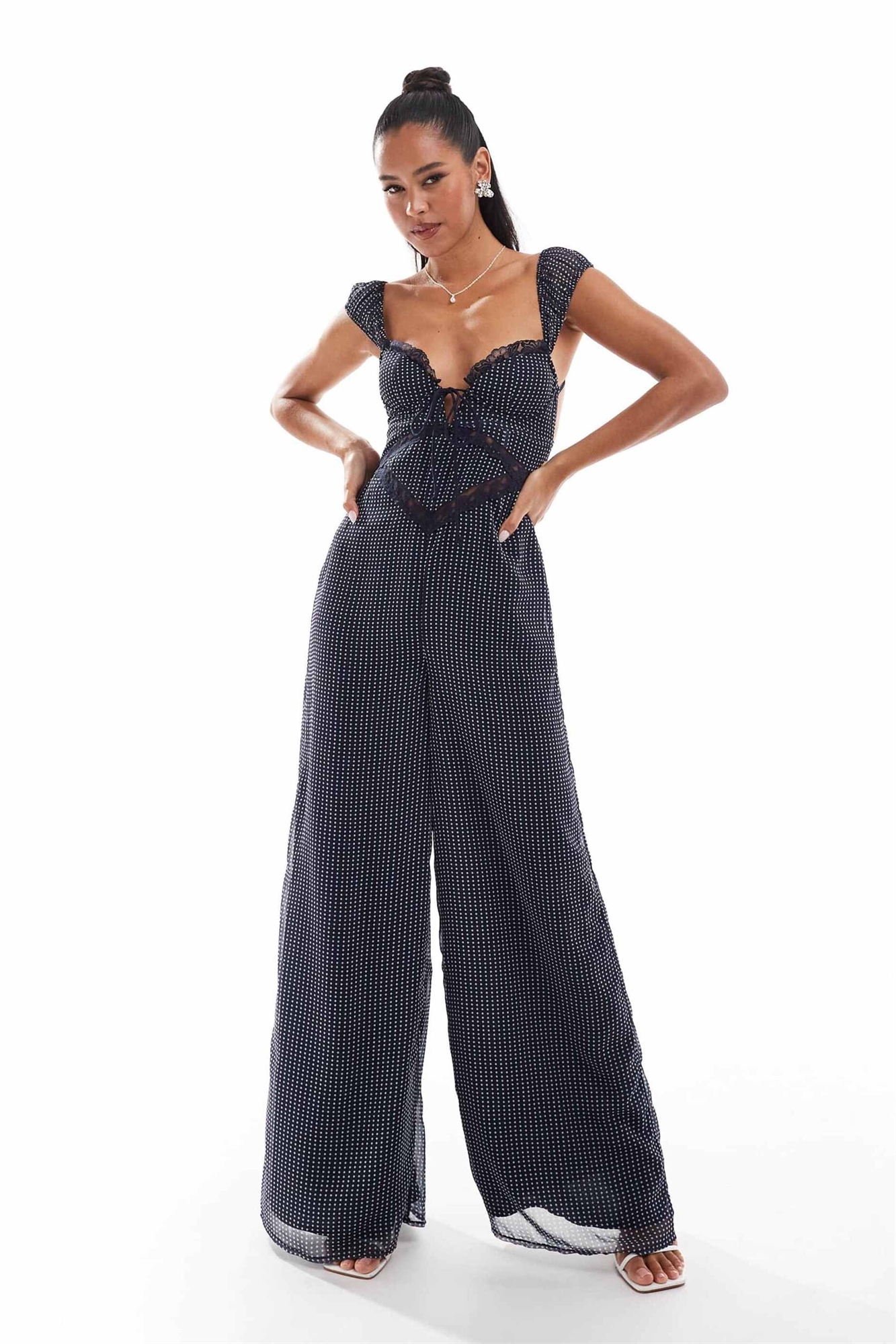 Комбинезон с широкими брючинами и корсетной вставкой из кружева