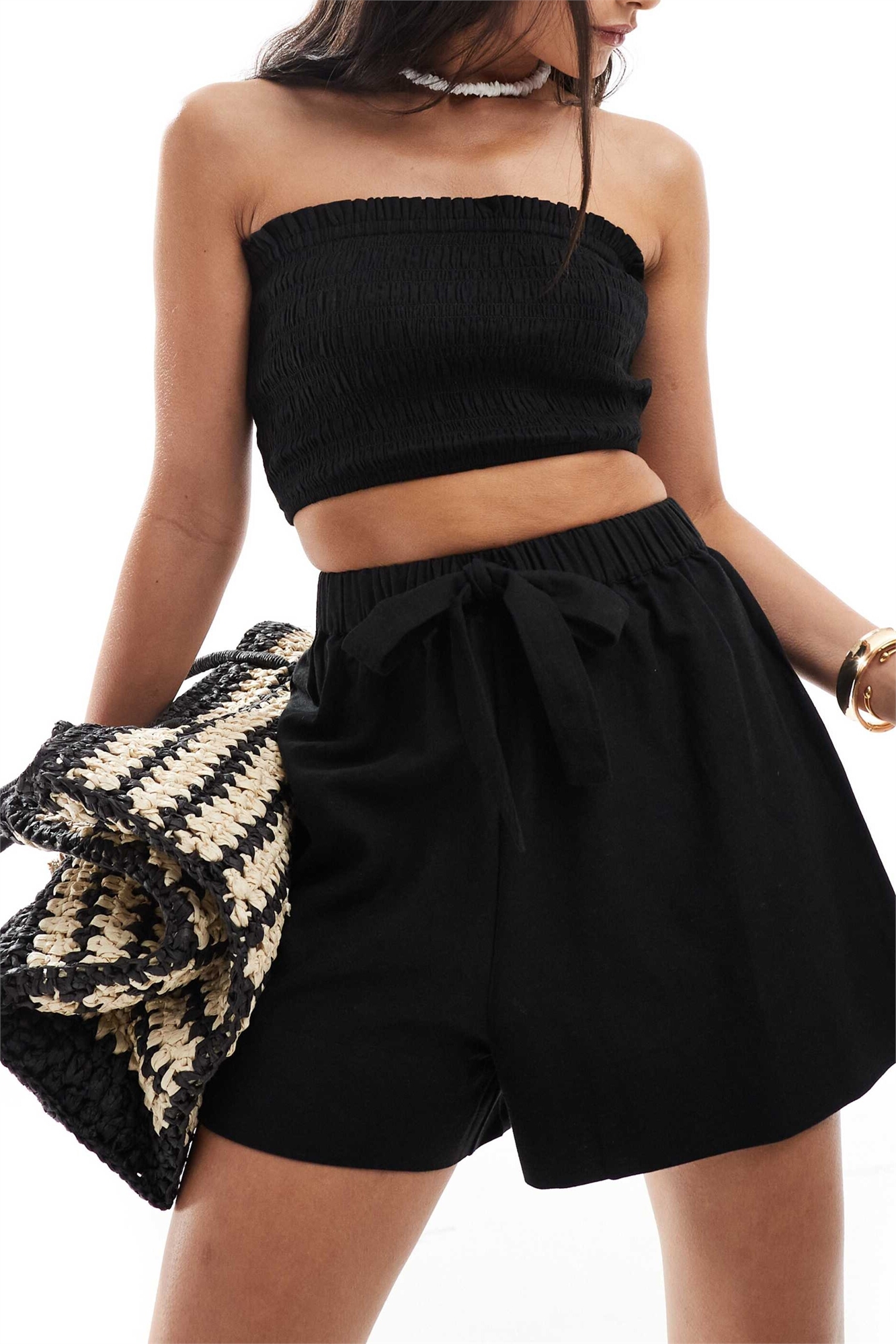 Пляжные шорты Isabel в стиле «микс-энд-матч» из ткани под лен