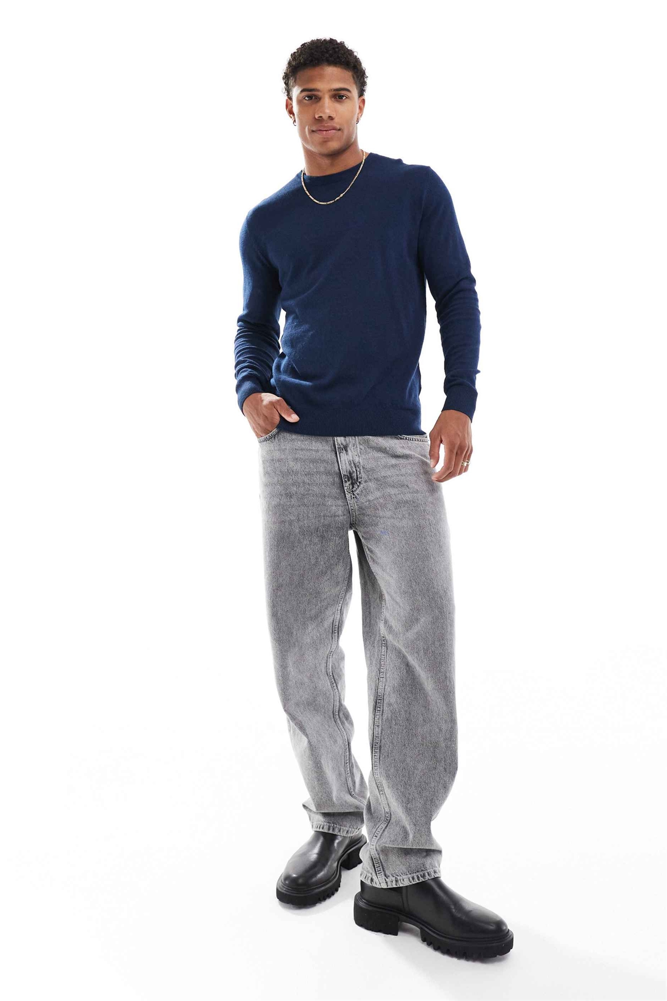 Свитер с круглым вырезом из тонкой пряжи