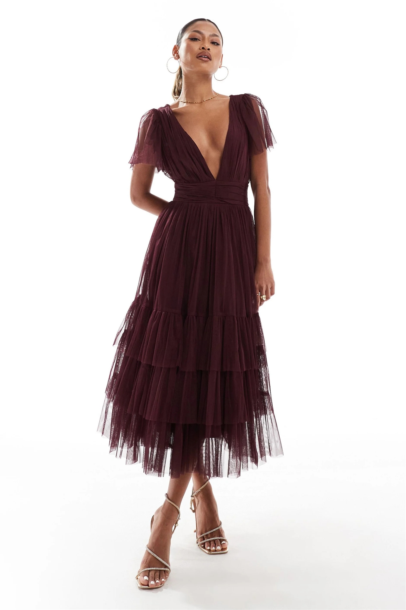 Платье средней длины из тюля с V-образным вырезом для подружки невесты от Madison