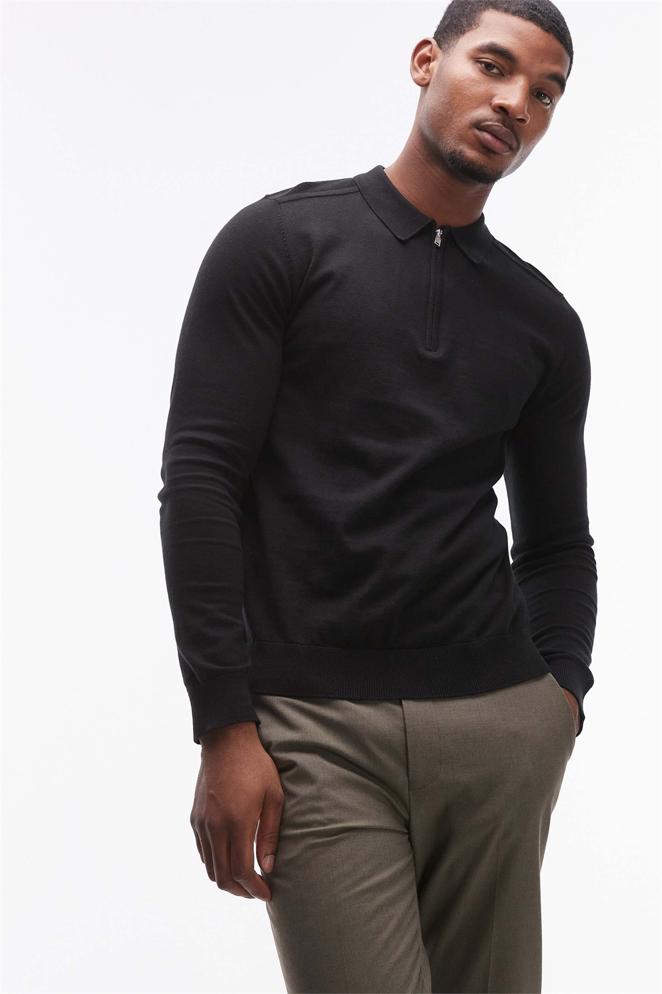 Поло с длинным рукавом и полузастежкой-молнией из 100% хлопка
