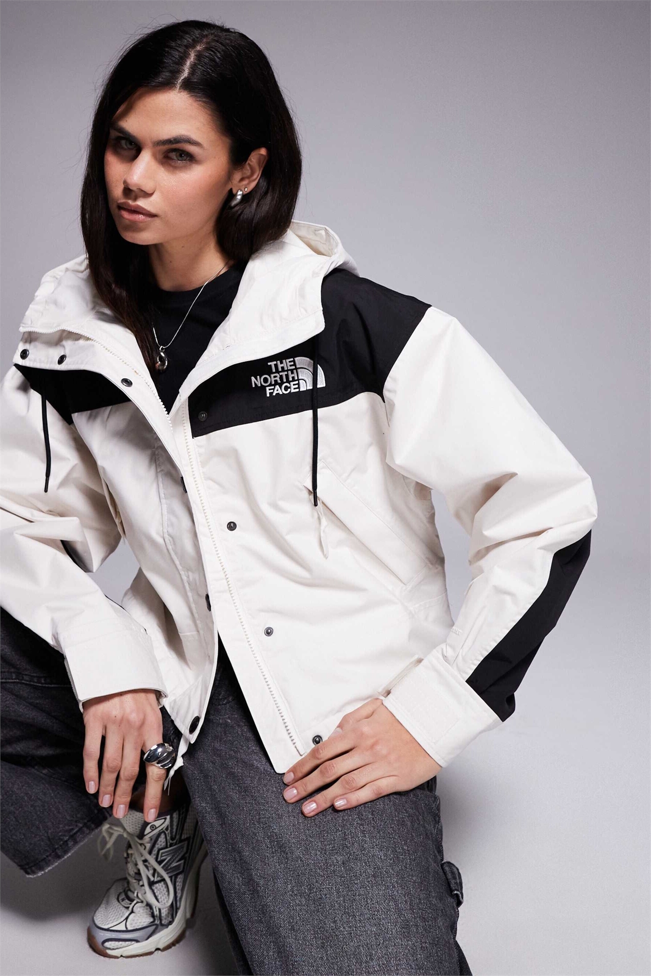Гладкая тканая ткань Использует технологию The North Face DryVent Прочная водоотталкивающая обработка для дополнительной защиты Водонепроницаемая, ветрозащитная и дышащая Позволяет выходить водяному пару Основной материал: 100% полиэстер.