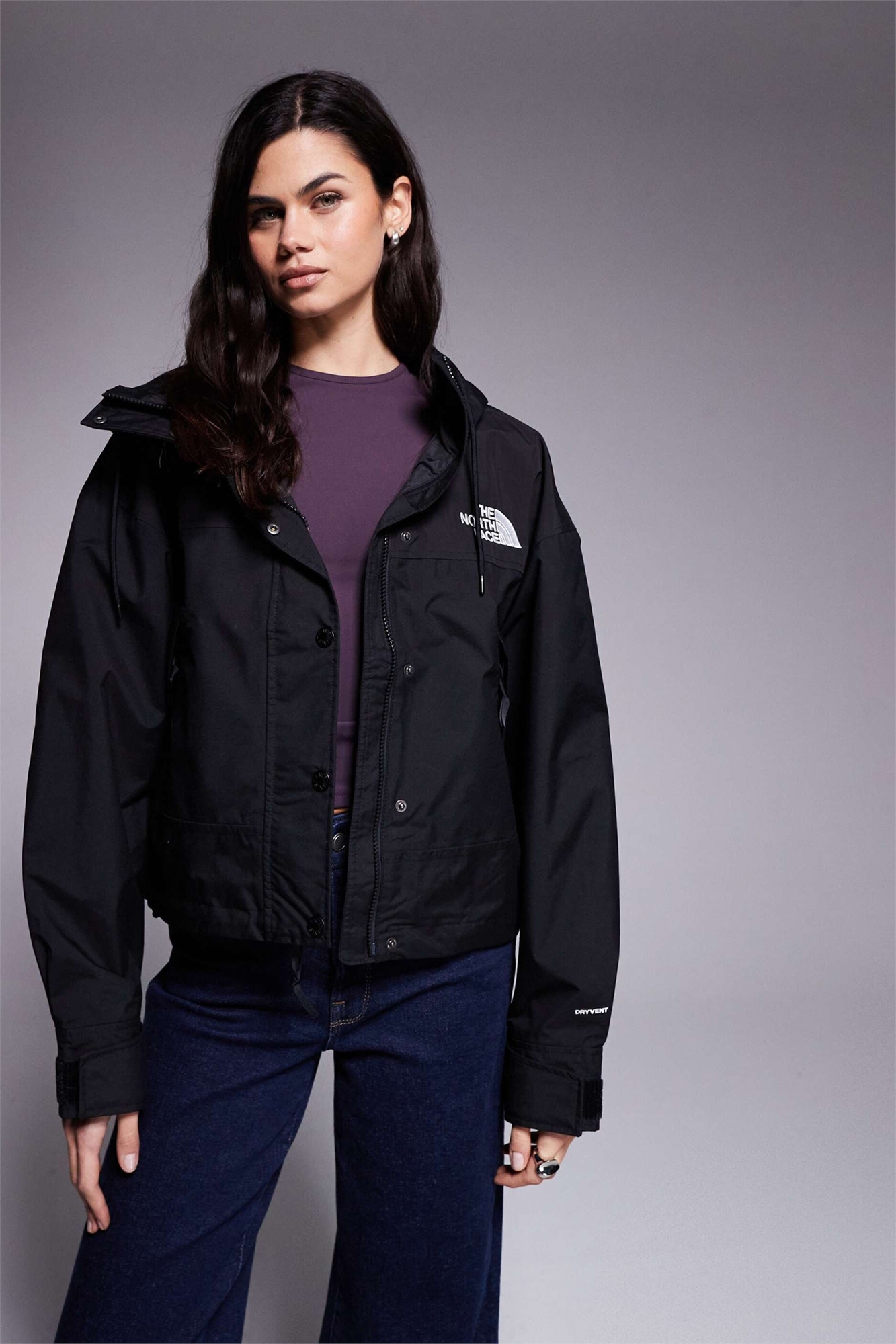 Гладкая тканая ткань Использует технологию The North Face DryVent Прочная водоотталкивающая обработка для дополнительной защиты Водонепроницаемая, ветрозащитная и дышащая Позволяет выходить водяному пару Основной материал: 100% полиэстер.