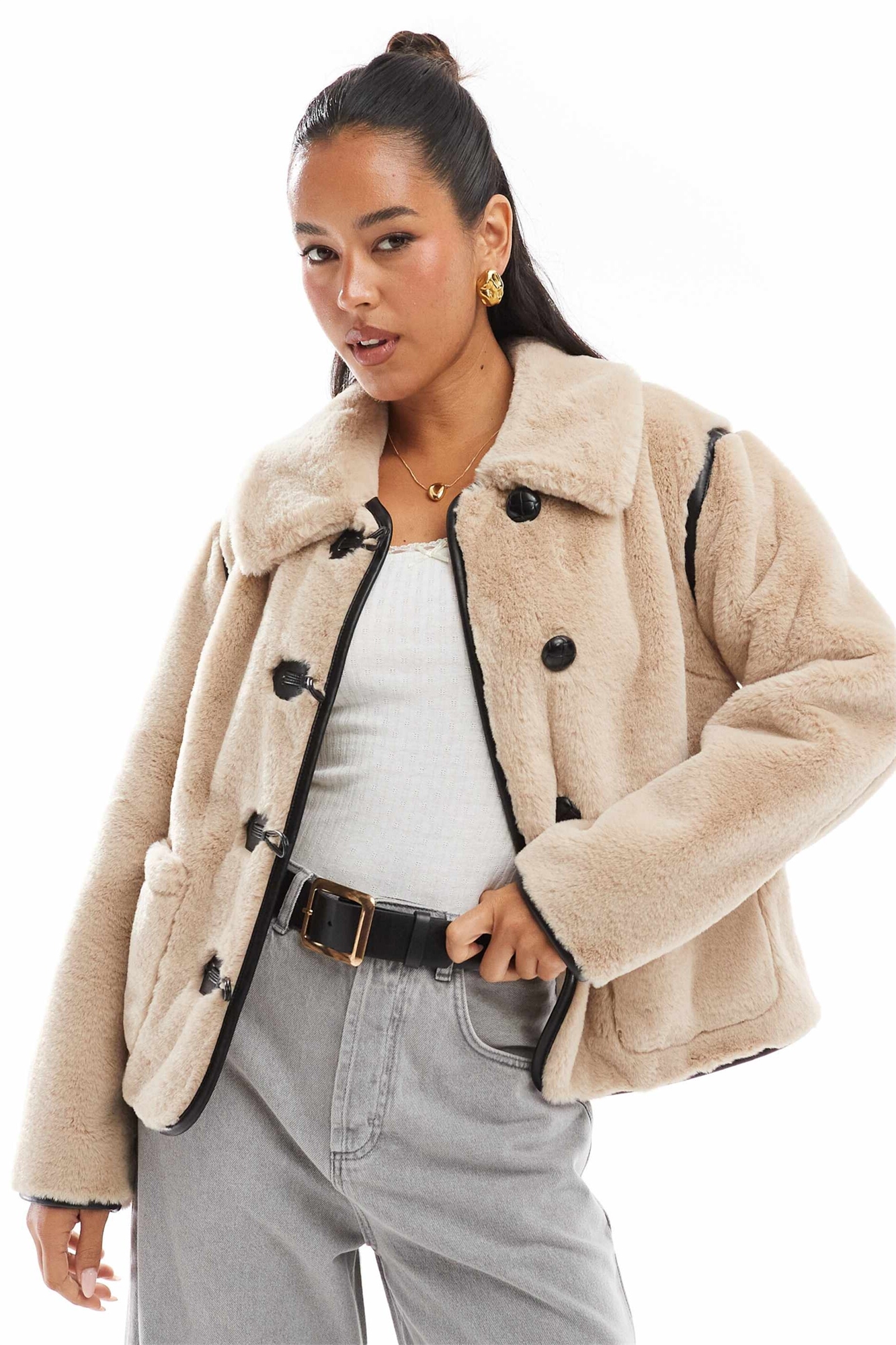 Куртка на пуговицах из искусственного меха