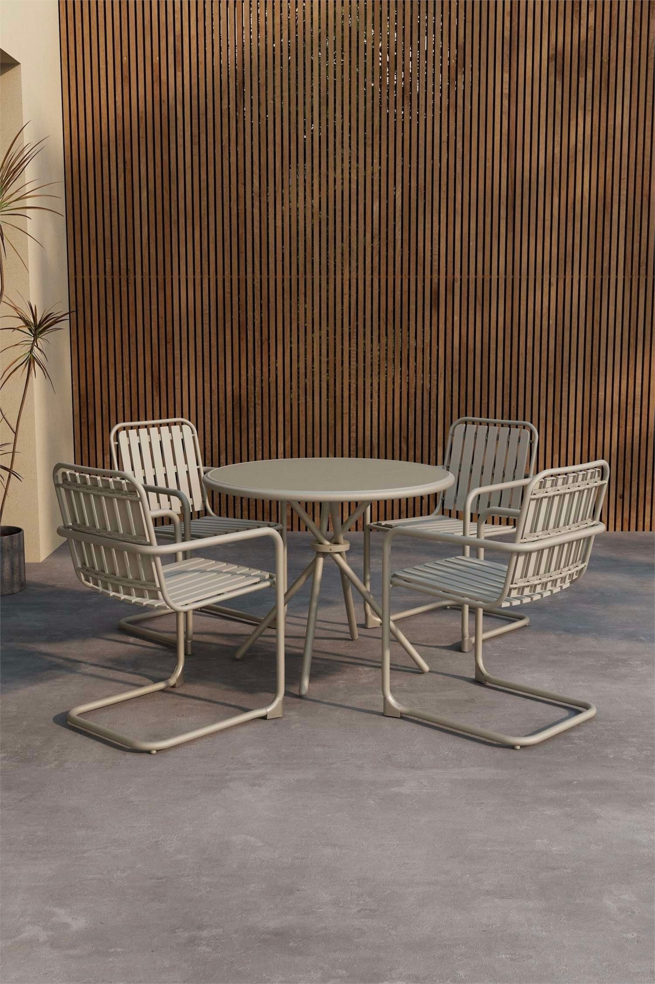Набор для обеда Chios — это современное и уютное решение для террасы или балкона. В набор входит круглый стол диаметром 90 см и четыре стула с элегантным плетеным дизайном и удобными формами, которые приглашают провести за ними долгие часы. Элегантная отделка придает стильный вид и легко сочетается с другой садовой мебелью. С набором для обеда Chios вы получаете функциональность и дизайн в одном — идеально подходит для всего, от солнечных завтраков до ужинов с друзьями. Размеры: стул: высота: 83 см, глубина: 59 см, ширина: 51,5 см, стол: диаметр: 90 см, высота: 71 см.