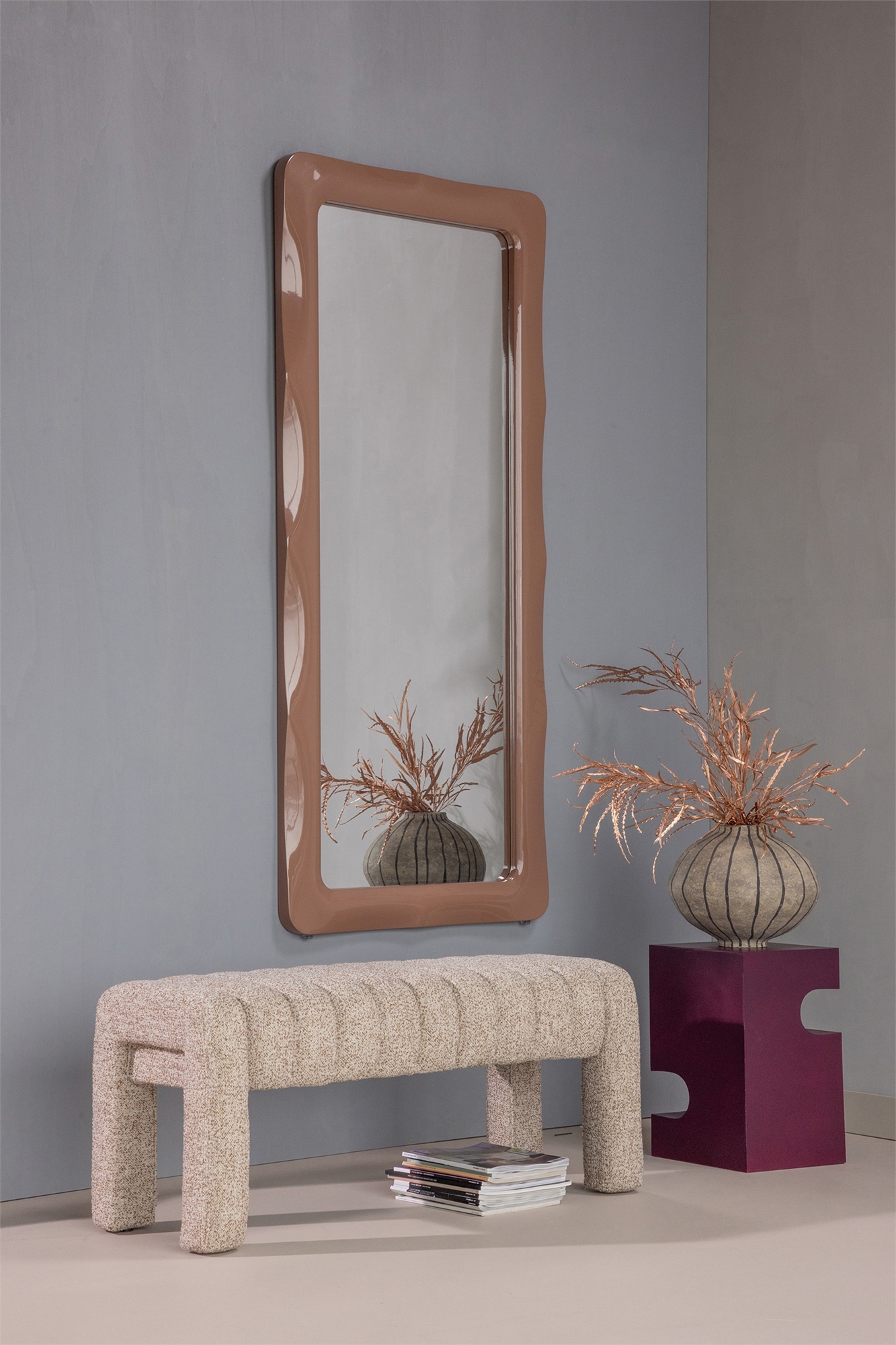 Скамейка Frex от WOOOD, обтянутая тёплым коричневым букле, сочетает в себе стиль и комфорт. Полностью мягкая скамейка имеет размеры 48 см в высоту, 110 см в ширину и 43 см в глубину и приглашает отдохнуть после долгого дня. Закругленные углы придают ей уютный вид, а мягкая ткань Jazz Bouclé из 100% полиэстера создает роскошную современную атмосферу. Диван имеет сертификат FSC и выдерживает нагрузку до 180 кг. Он поставляется в сборе в одной упаковке, включая войлочные накладки для защиты пола.