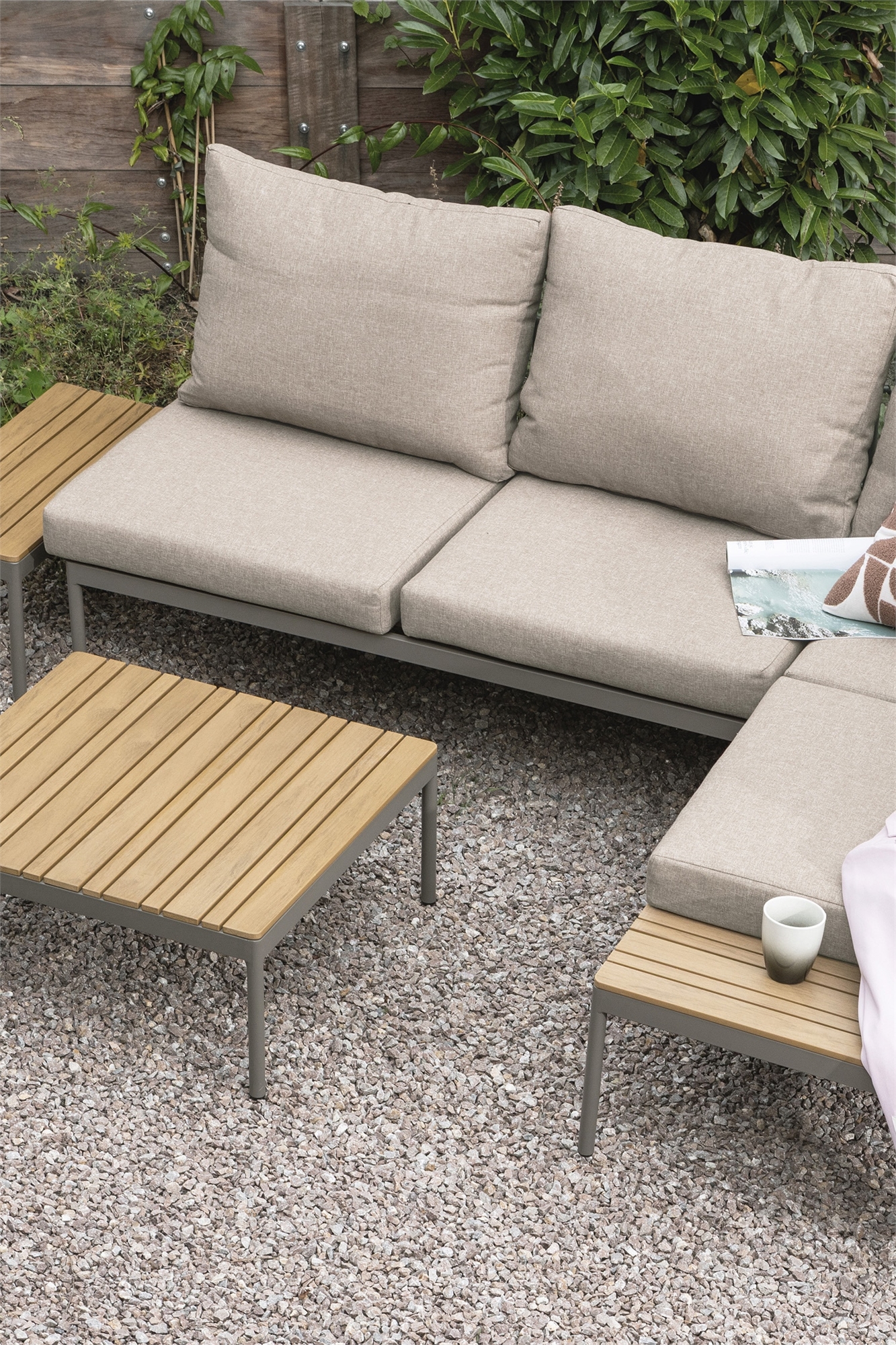 Модульный садовый гарнитур Zaro от голландского бренда мебели WOOOD сочетает в себе комфорт и широкие возможности для дизайна. Благодаря модульной конструкции этот гарнитур можно гибко адаптировать к имеющемуся пространству и различным ситуациям использования. Бежевая расцветка создает теплый визуальный эффект и гармонично вписывается в различные стили сада. Прочная металлическая рама сочетается с обивкой из олефина для улицы, которая обеспечивает приятный комфорт при сидении. Высота набора составляет 65 см, ширина — 183 см, а глубина — 67 см. Высота сиденья составляет 43 см, общая ширина сиденья — 247 см, а глубина сиденья — 44 см. Высота спинки составляет 23 см, высота ножек — 28 см. Благодаря весу 44 кг и грузоподъемности до 220 кг набор легко перемещать и он отличается устойчивостью.
