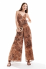 Комбинезон из шифона с V-образным вырезом и прозрачными вставками