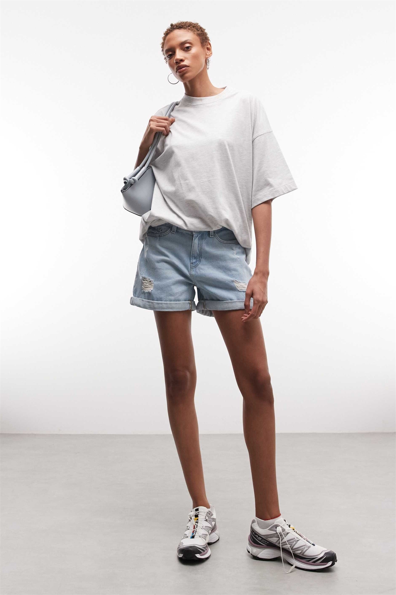 Шорты-момики из рваного денима