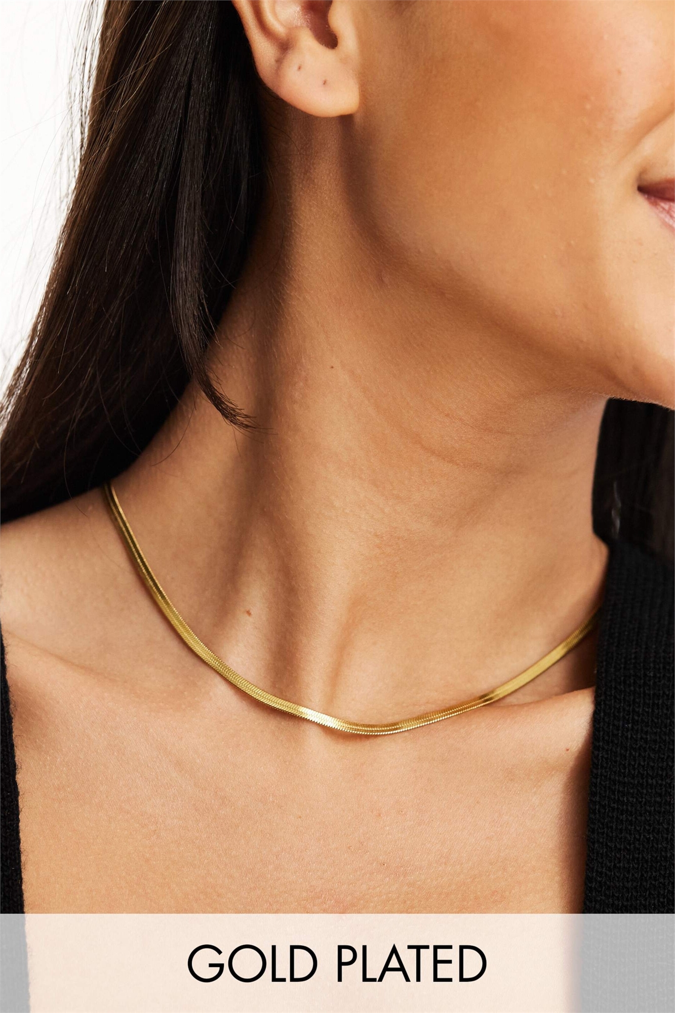 Колье с плоской змеиной цепочкой из нержавеющей стали с 18-каратным золотым покрытием