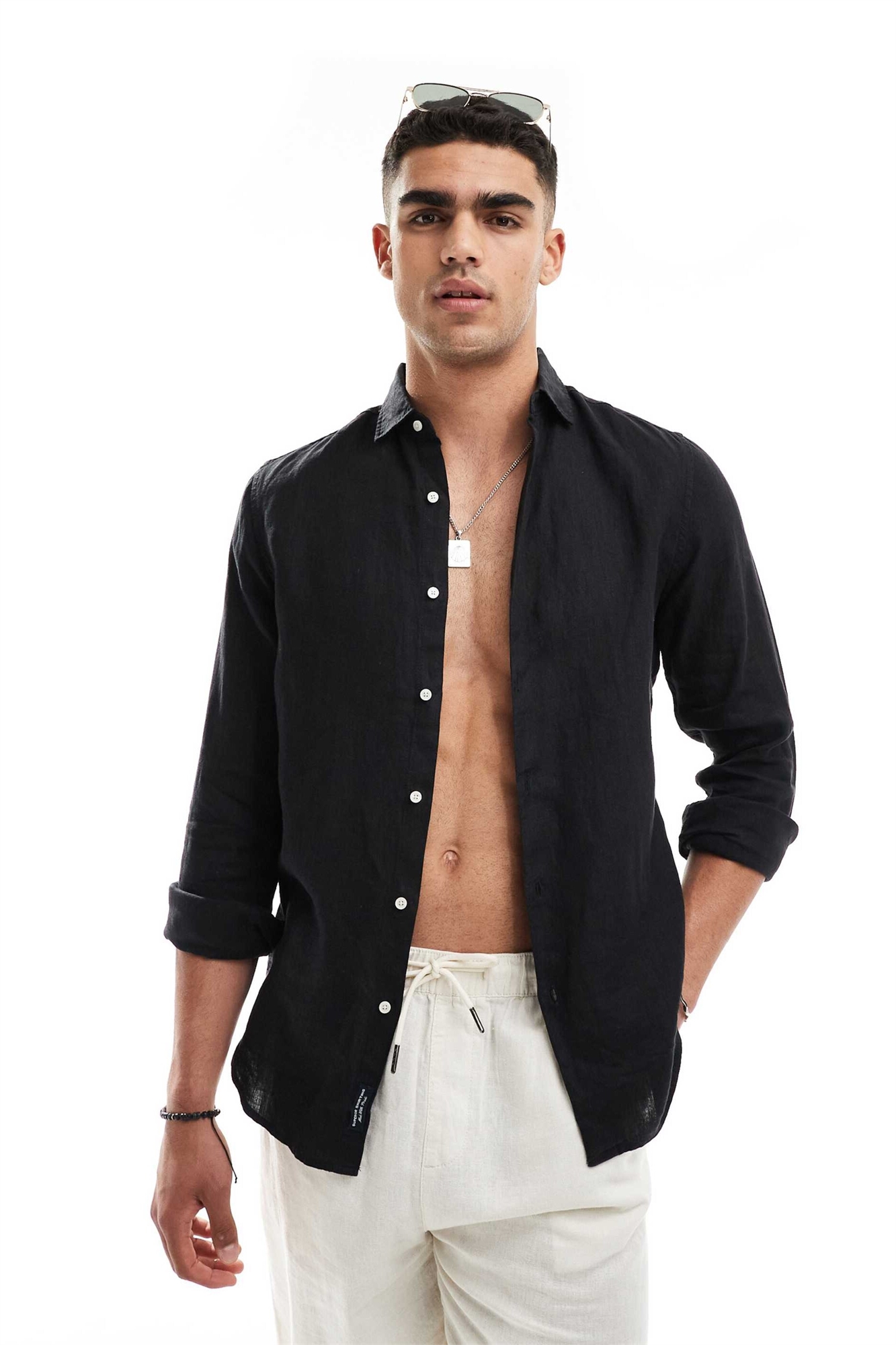 Повседневная льняная рубашка с длинными рукавами