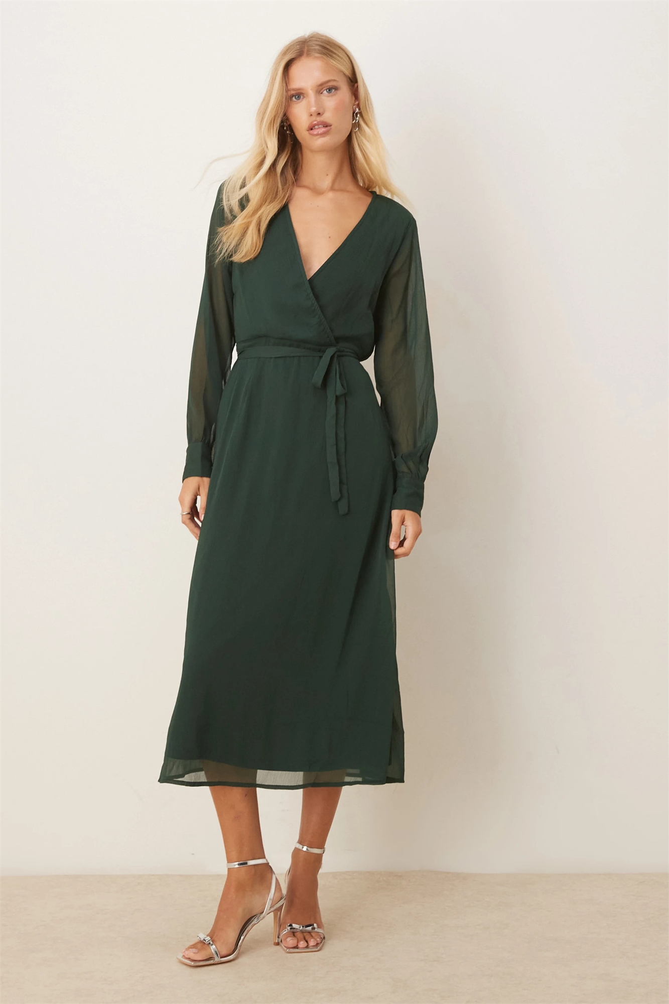 Платье средней длины с длинными рукавами и V-образным вырезом