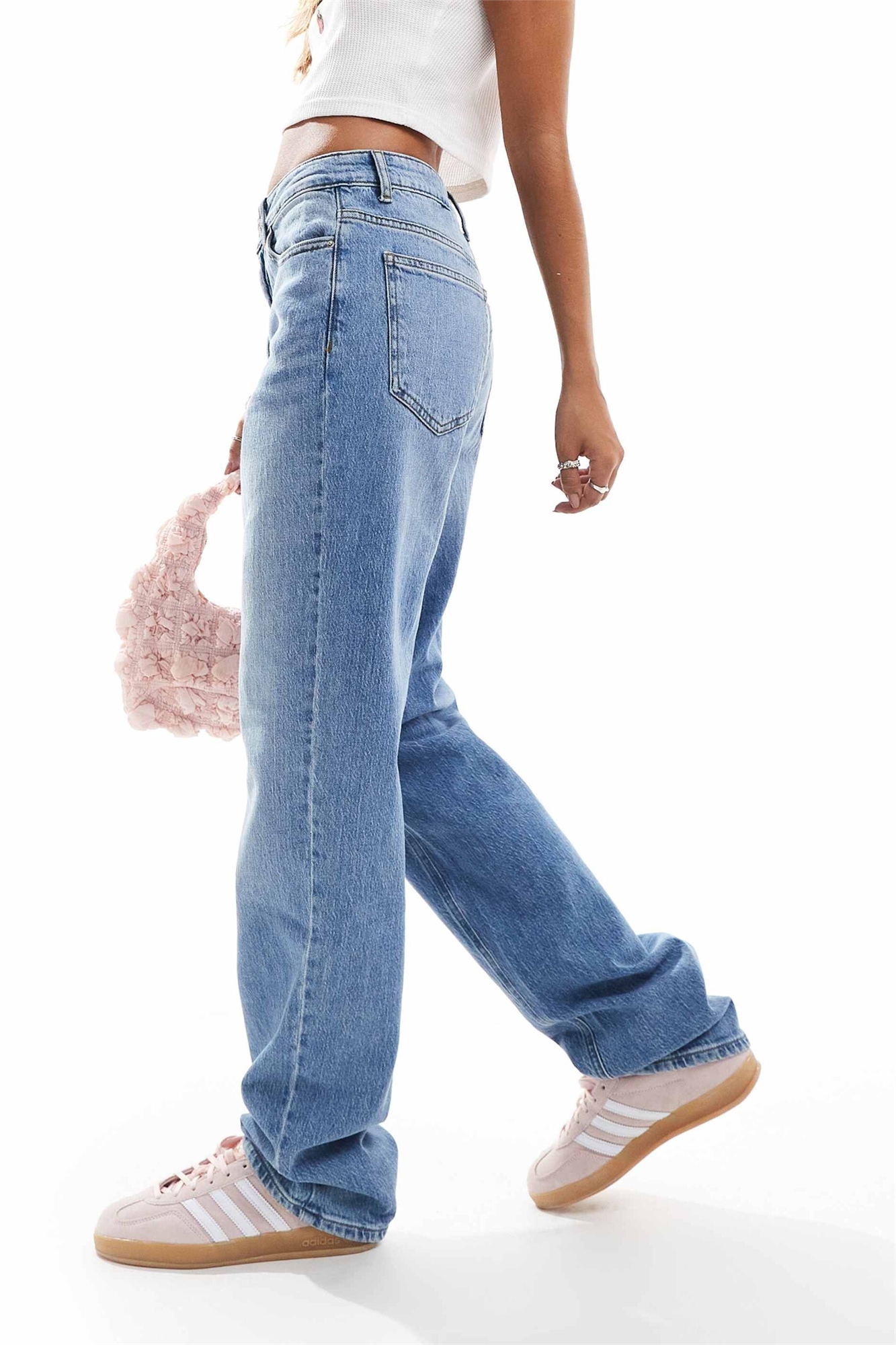 Неэластичный деним: средне-синий оттенок Основной материал: 99% хлопок, 1% эластан.