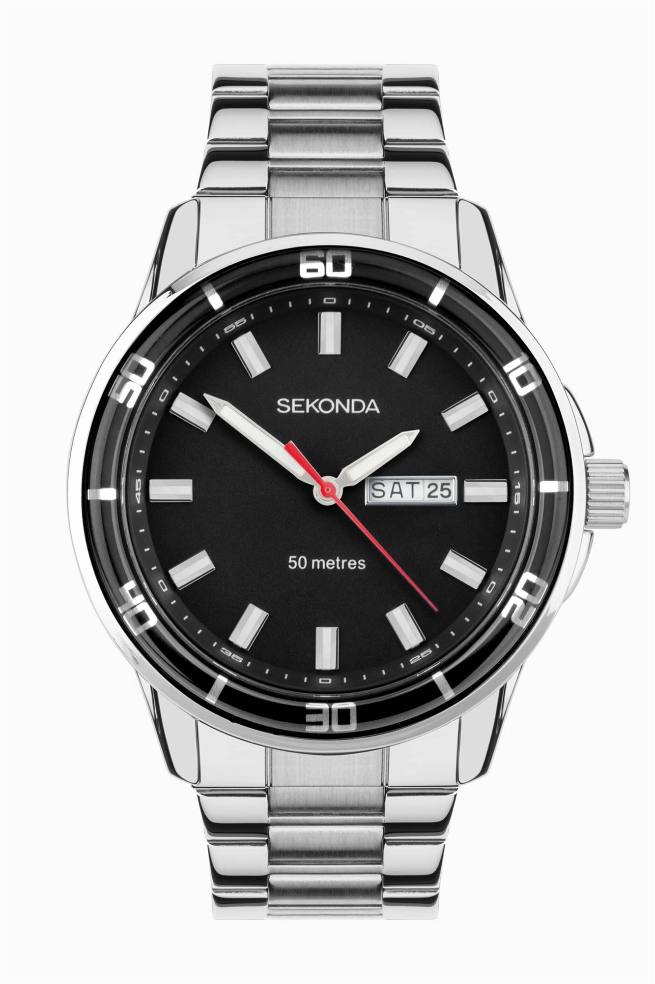 Мужские аналоговые часы Midnight диаметром 44 мм с серебристым корпусом и браслетом из нержавеющей стали с черным циферблатом