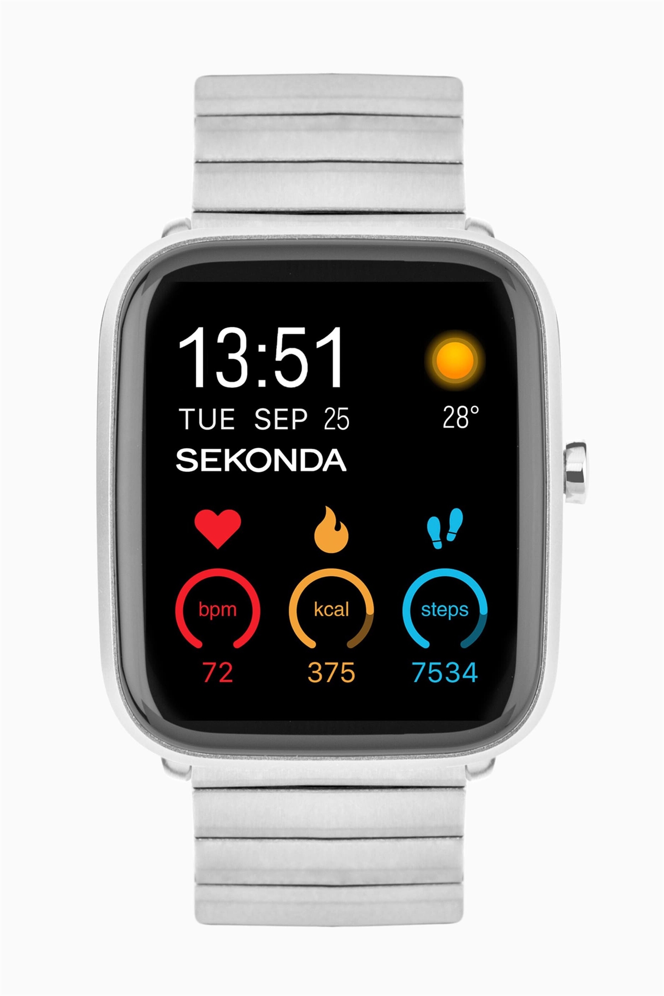 Универсальные смарт-часы Motion Plus с серебристым корпусом и браслетом из нержавеющей стали, оснащенные ЖК-дисплеем