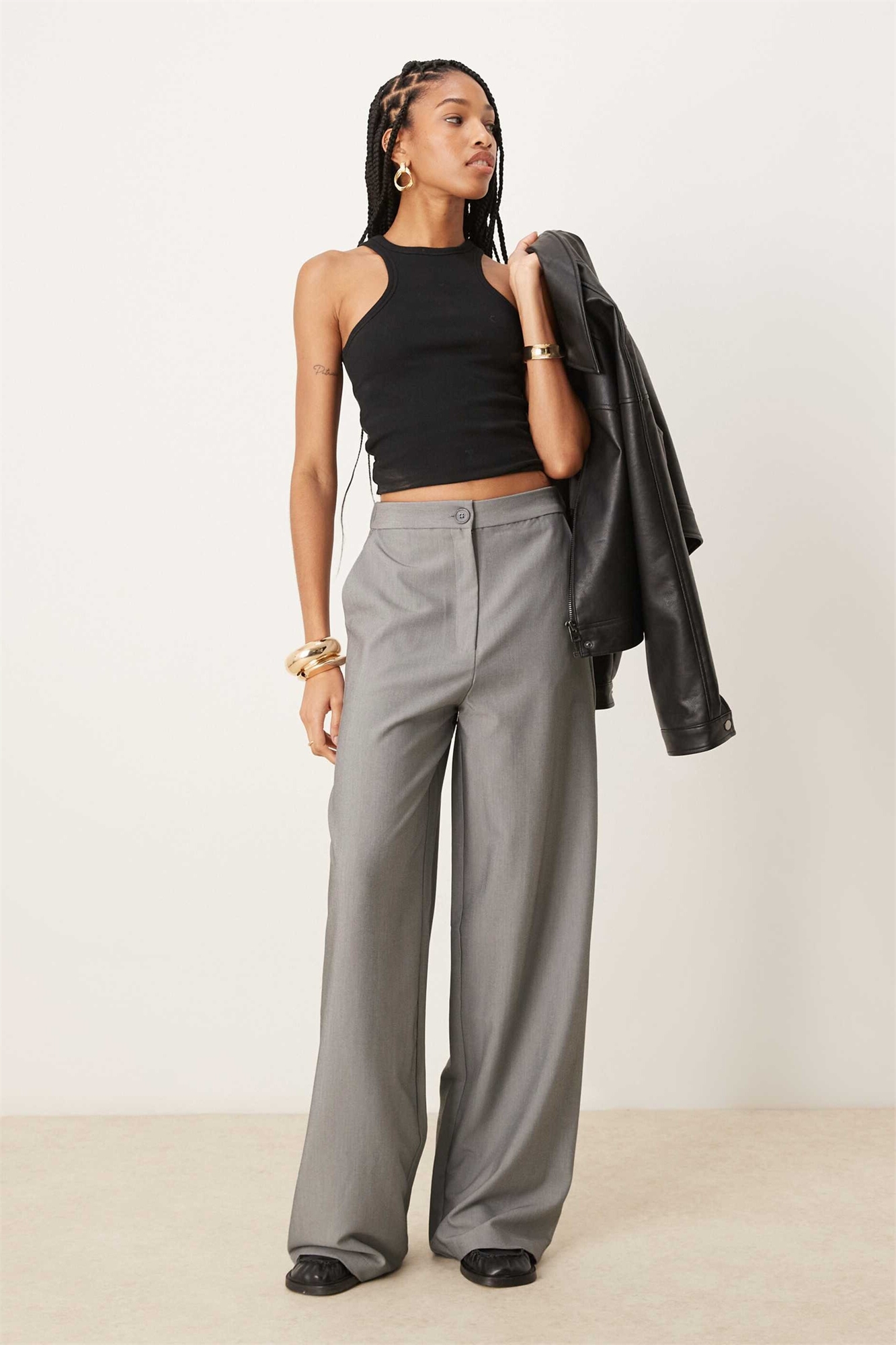 Высокие брюки с прямыми брючинами свободного кроя