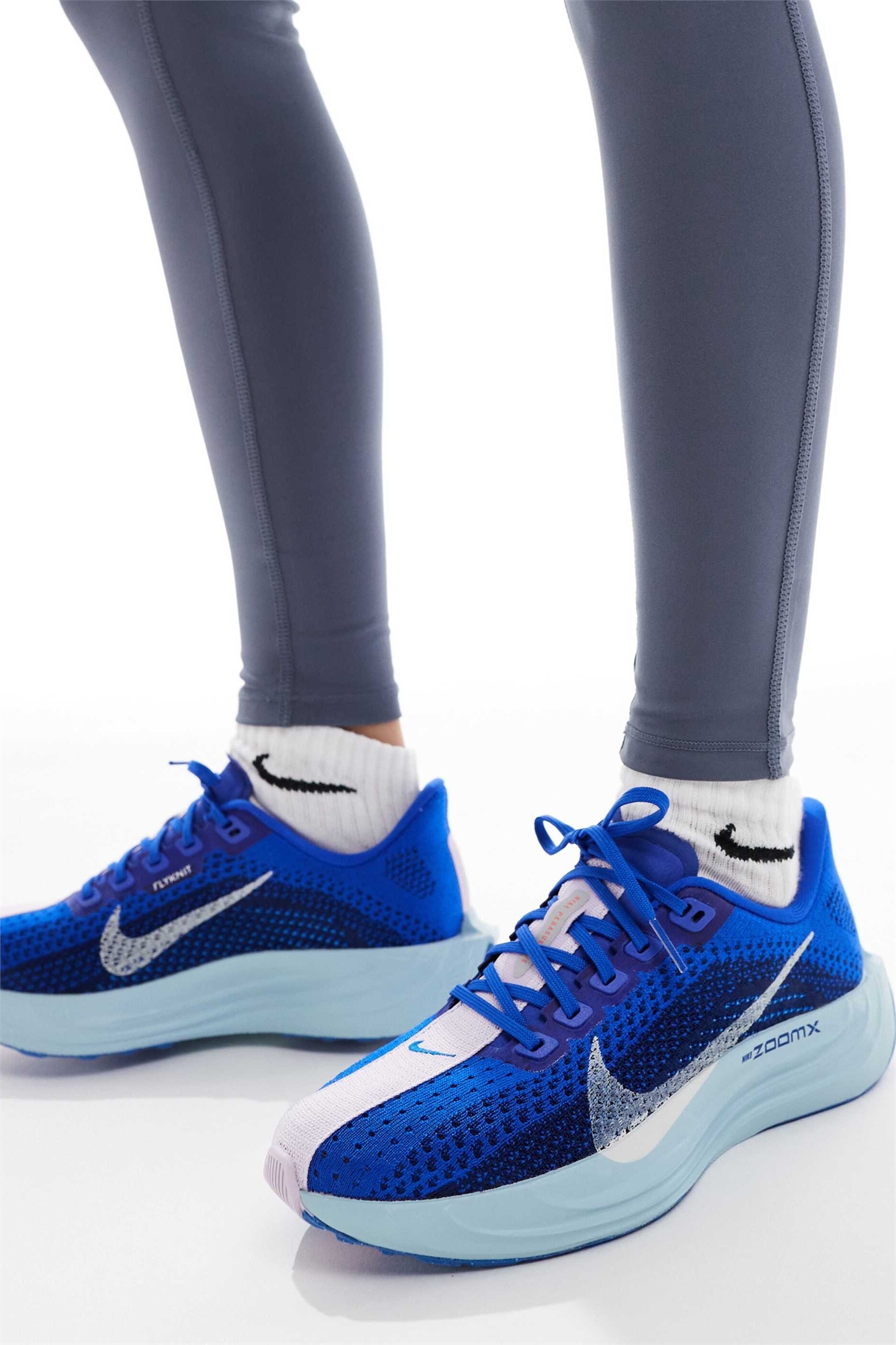 Верх Nike Flyknit. Вязаная конструкция, напоминающая носок, обеспечивает легкость, комфорт, гибкость и поддержку. Приблизительный вес: 205 г. Основной материал: 100% полиэстер, подошва: 70% резина, 30% пластик, верх: 87% текстиль, 13% полиэстер.