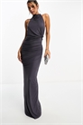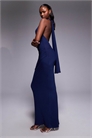 Макси-платье с открытым верхом, с скрученной сетчатой вставкой на груди и завязками на шее сзади
