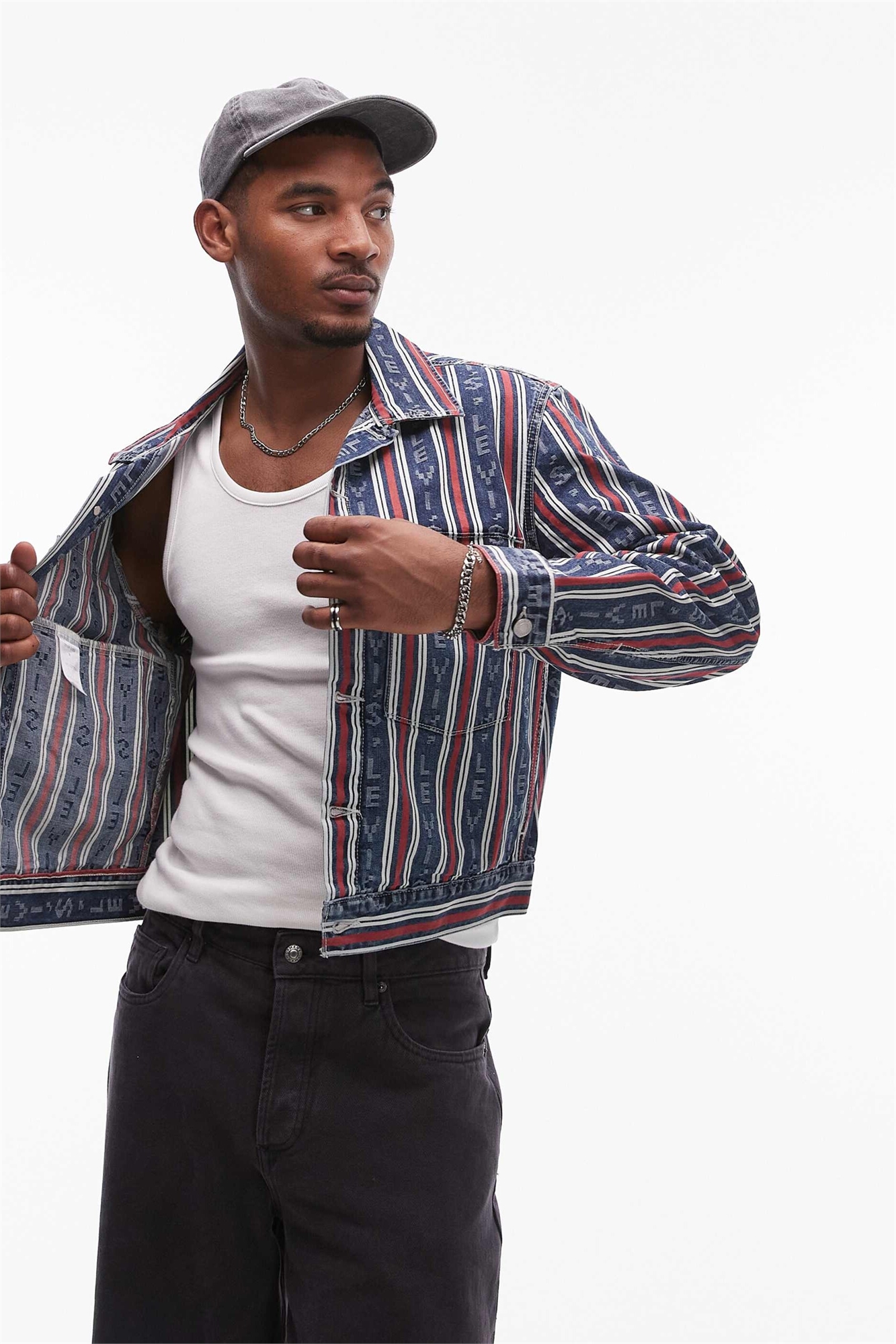 Джинсовая куртка Embarcadero с логотипом в виде полоски, свободный крой, средне-синий цвет