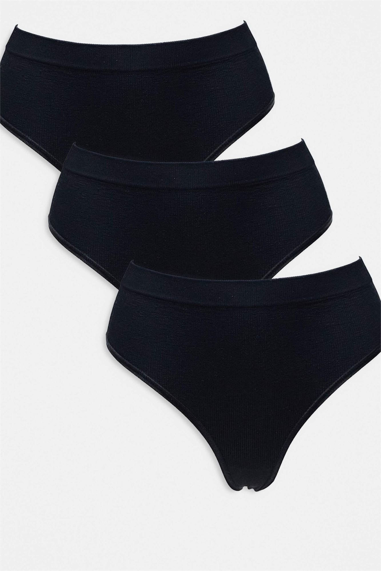 Набор из 3-х бесшовных стрингов с высокой талией и ребристой отделкой